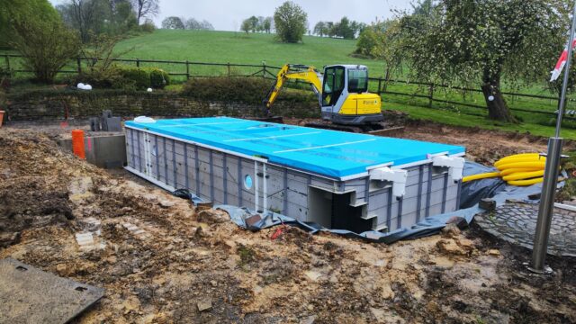 Privatkunden-ProjektePoolbau Teil 2 – Gartengestaltung WAS: Poolbau – Gartengestaltung WO: Borchen Jetzt fehlt noch die Bepflanzung und die Rasensaat.