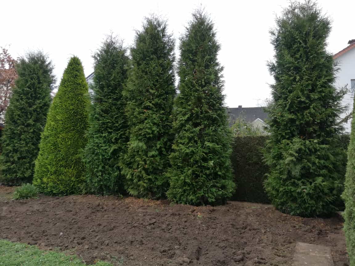 WAS: Baumpflanung, Sichtschutz Die immergrünen Koniferen dienen als Sichtschutzelemente im Privatgartenbereich.
