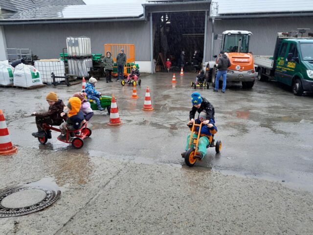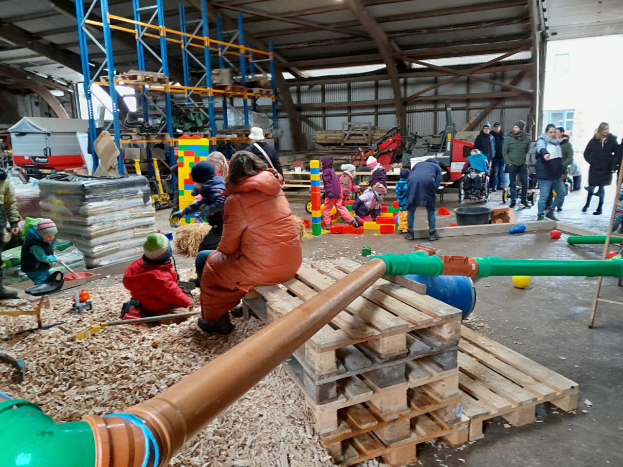 Am Samstag öffneten wir unsere Tore für kleine und große BauarbeiterInnen. Verschiedene Stationen standen für die Kids bereit wie eine Kugelbahn aus Rohren, Riesen-Legosteine, ein großer Hackschnitzelberg in dem kräftig gebuddelt wurde, verschiedene Tretfahrzeuge, Geschicklichkeitsspiele, Baggerfahren, Rückeschlepper fahren und Stockbrot backen. Für alle Gäste gab es zur Stärkung, Punsch, Kaffee und Kuchen.